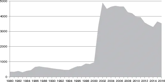 Figure 1.1 Scholarly publications on terrorism and counterterrorism, 1980ā2016.