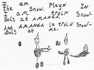 Letter Shaker (4)— The writer of Pattern 4 shows a connection between the illustration and the letters. She writes letters from left to right; her story remains constant, but it may be due more to the illustration than the writing.
