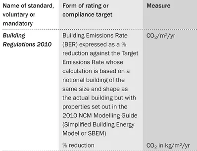 Table 1 sets out the different standards, both statutory and voluntary, which apply to new and refurbished buildings.