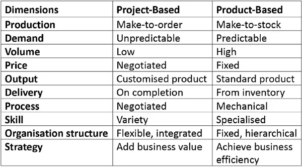 Table 1.1 Dimensions of product-based organisations and project-based organisations