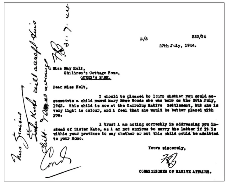 Mr AO Neville was obsessed with the ‘breeding out’ of half-caste Aboriginal children. His basic idea was to encourage women with lighter skin colour to co-habit with nearby white men. Eventually this would eliminate any traces of Aboriginality. In order to do this he had to strictly control the lives and marriages of fair-skinned young women, so his policy was to segregate them from childhood from the influences of parents and culture.