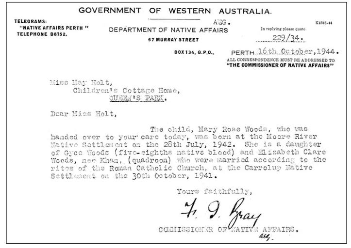In 1905 an Act was passed to make provision for the better protection and care of the Aboriginal inhabitants of Western Australia. Later in 1936 another Act was passed in which Mr AO Neville, the Chief Protector of Aborigines, was made the legal guardian of all Aboriginal children. This Act has affected my life, because I was born in 1942.
