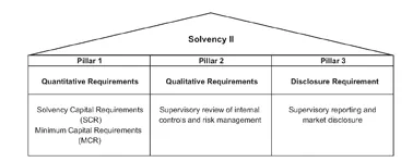 Although there is no reference to āpillarsā in the Directive, Solvency II has become synonymous with the āThree Pillar Approachā adopted by CEIOPS to help frame the regulatory review process:
