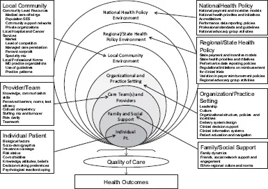 Figure 1.1 Multilevel model of contextual factors influencing care delivery. (Adapted from Taplin, S. H., et al., JNCI Monographs, 2012, 2, 2012.)