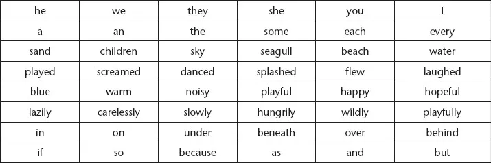 When introducing word classes to younger children, you might give them a handful of words, colour-coded according to word class, and ask them to use them to make as many phrases or sentences as they can. Once theyāve done this, ask them what they notice about the words on different coloured card. What do all the words on the green cards do? And what do all the words on the blue cards do? Then you can introduce the terminology, once pupils have an understanding of how the words work in practice. (You can limit or increase the number of words you provide, and give fewer word classes at a time if you wish.)
