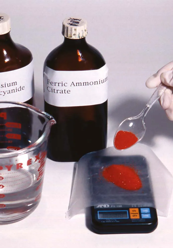 Another example is from Dr. Mike Ware who states: “ammonium dichromate (or the corresponding potassium or sodium salts) has long been used on a large commercial scale in the printing industry, and for tanning of leather, occasionally giving rise to documented cases of occupational illness. It is also employed in large amounts for the Gum Bichromate and Carbon printing processes.” The very small quantity used in the sensitizers described in this book does not represent a serious risk if the chemical is handled sensibly and proper precautions are taken. You can always leave this chemical out of your tool box and avoid it altogether.