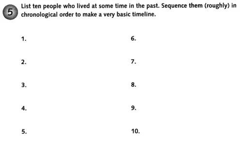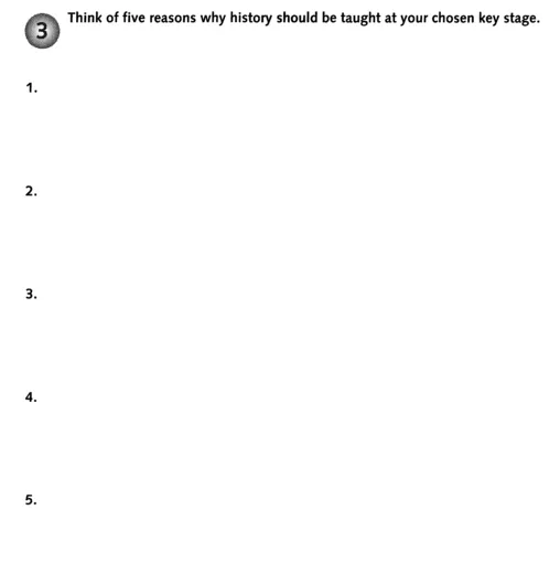 Compare your list with someone else's before looking at the suggestions made by the National Curriculum History Working Group (following).