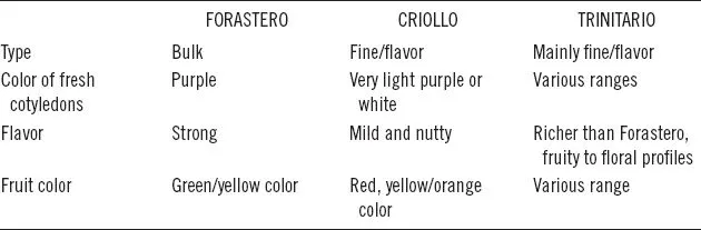 Table 1.1 Characteristics of Forastero, Criollo and Trinitario Cocoa Beans