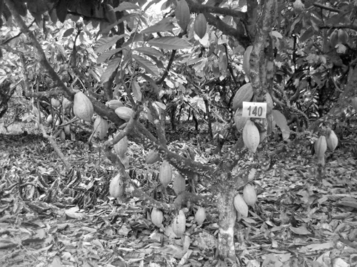 Cocoa (family Malvaceae, genus Theobroma) is indigenous to South America and grows mostly in tropical regions that are 20 degrees north and south of the equator. Annual rainfall of at least 1000 mm but not more than 3000 mm is conducive for cocoa planting with a temperature variation of around 18–32°C. Countries such as Côte d’Ivoire, Ghana, Brazil, Ecuador, Indonesia, Malaysia and Papua New Guinea are examples of countries that produce cocoa beans (Awua, 2002). Theobroma cacao (Figure 1.1) is the most widely cultivated species as compared to other lesser known species such as Theobroma bicolor and Theobroma grandiflorum (Toxopeus, 1985).