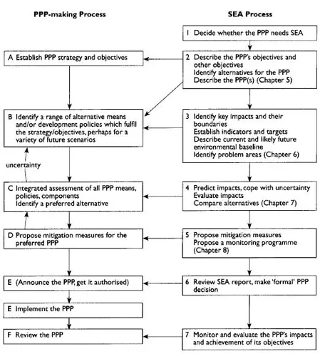 As PPPs are tiered, so can SEAs be, with higher-level SEAs setting the context for lower-level SEAs, which in turn set the context for project EIAs. Figure 1.1 shows the broad stages of the PPP and SEA processes.