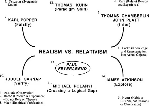 During the 1960s and 1970s, researchers in ecology (e.g., critiques by Dayton, 1979; Loehle, 1987) and in psychology (e.g., critique by Mahoney, 1976) adopted another rather narrow approach (moving further clockwise around the diagram); they insisted that research be molded into an appropriate “null hypothesis” (falsification) protocol. The implicit rationale: If a premise cannot be proven false, then it is likely true or has some “probability” of being true (“realism” school).