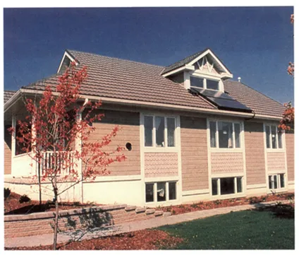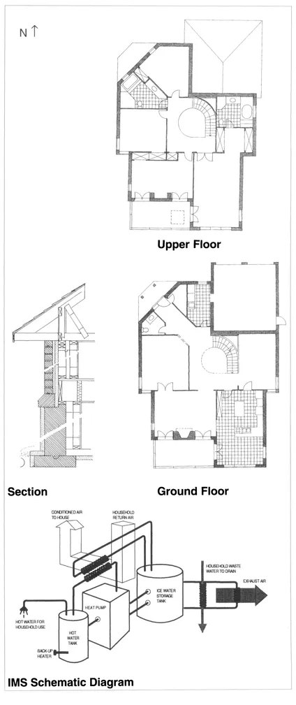 A prototype combination natural gas furnace and air-to-air heat exchanger of small rocks provides heating and mechanical ventilation. A solar domestic hot water system, with the circulation pump powered by a PV panel, meets most of the hot water needs. Water conservation features include a cistern, 3 I flush toilets, and low water use appliances. Energy-efficient appliances include a directvent natural gas stove and a non-CFC refrigerator.