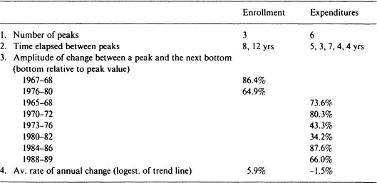 Table 1. Main features in enrollments and expenditures fluctuations: 1963β1989