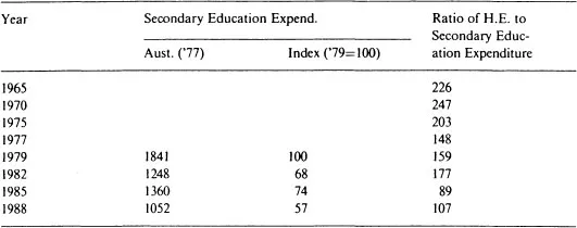 Table 2. National Government: per-student expenditures in higher education relative to secondary education