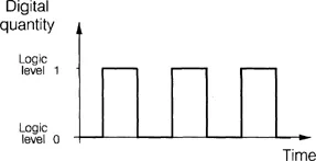 The analog process, on the other hand, recognizes a continuously variable state, where the levels are, theoretically at least, infinitely variable between a lower and an upper limit. An example of an analog signal is shown in Figure 1.2.