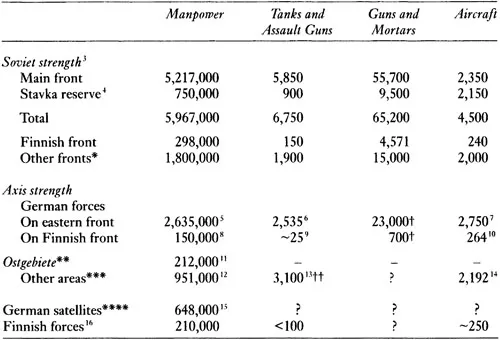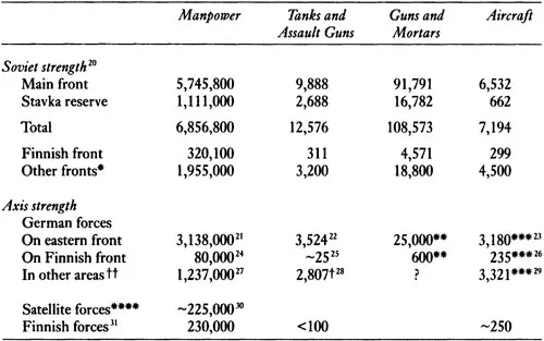 | **** | Includes Hungarian, Italian, Rumanian and Slovakian troops on the eastern front. Figures apply to 10 September 1942, additional satellite units had arrived since 1 July. The strength on that date must consequently have been lower, |