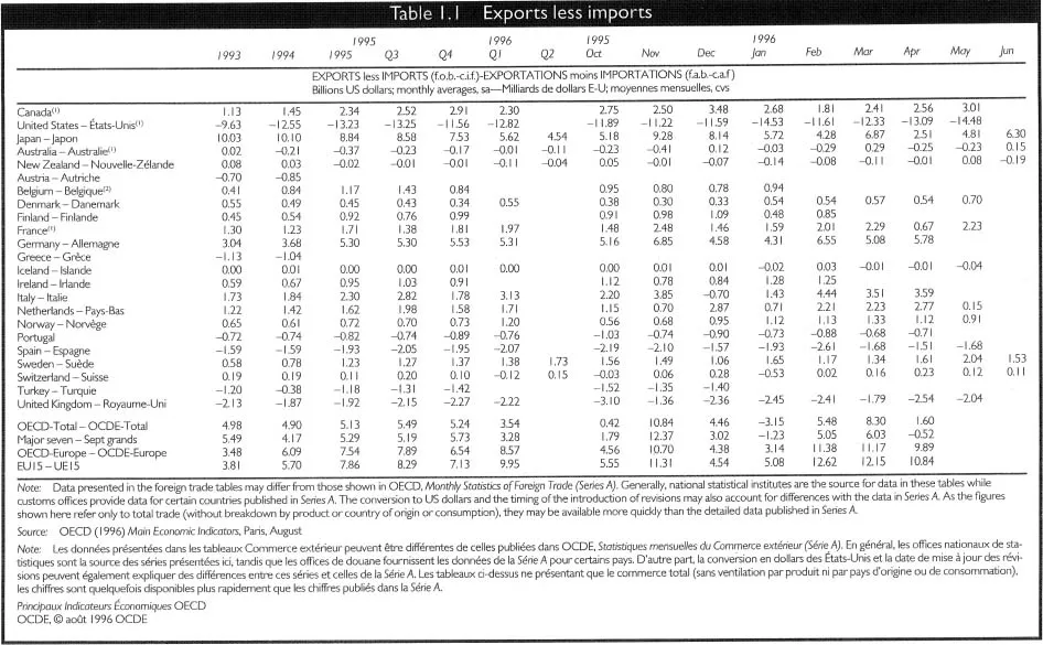 Source: OECD (1996) Main Economic Indicators, Paris, August