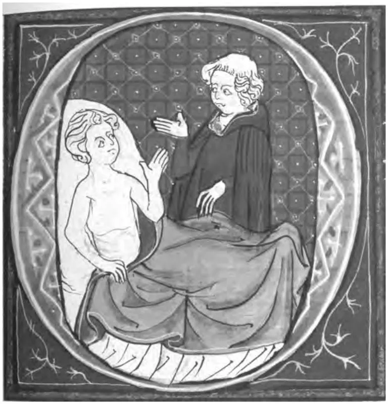 Medieval doctor and patient. From a fourteenth-century Latin edition of Galen.