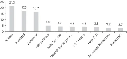 FIGURE 1.2 Top 10 staffing companies in billions of $