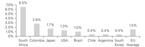 FIGURE 1.4 Agency work penetration rates outside Europe in 2009*