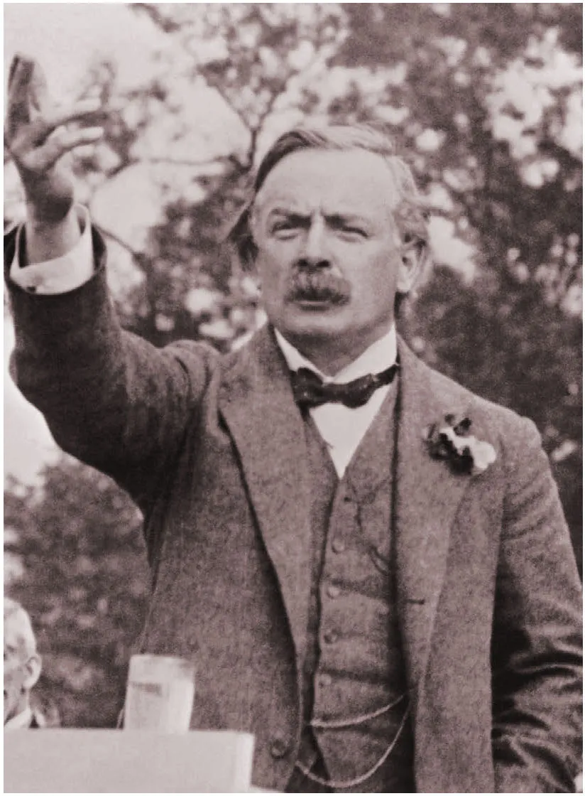 David Lloyd George, Minister of Munitions, 1915â16, giving a rousing speech in Dundee, Scotland. He was in favour of conscription, but also wanted skilled men to be kept working in their factories.