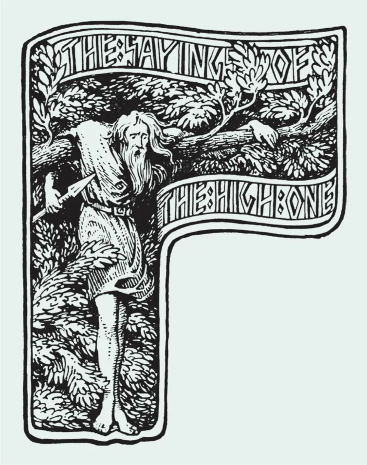 Óðinn hanging himself on Yggdrasill. Illustration by W. G. Collingwood for Olive Bray’s 1908 translation of the Poetic Edda.