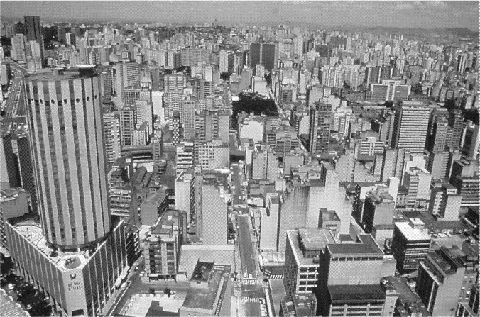 Sâo Paulo with 34.0 million inhabitantsâequal to Argentina or Colombiaâis the state par excellence of cities, industry, and commercialized agriculture. Half are to be found in sprawling Sâo Paulo city, which has as its chief components the municipality of that name (with 9.9 million inhabitants) plus the state's third, fourth, fifth, and sixth most populous localities.3 If Rio de Janeiro is a challenger for the title of the world's most beautiful city, Sâo Paulo is a contender for that of most dynamic megacity. The metropolitan region alone has 16 million residents, and within a radius of sixty miles there are six other urban centers, two with populations of over 1 million and four with 480,000â570,000. This is the heartland's heartland; it includes the country's equivalent of Wall Street as well as of Detroit and St. Louis and has the number one port. The urban region's economically active population nearing 9 million, one-eighth of the nation's workforce, produces a quarter of the country's GDP.