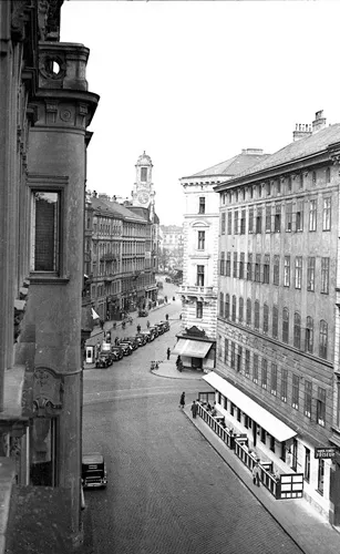 On December 1, 1931, when he began to write, Bob was living at Berggasse 19 in an apartment two floors above the one occupied by Sigmund Freud and his family. Bob had a spacious bedroom to himself and once leaned out the window to record the view down the street with his new Leica rangefinder camera. I recently visited that same room and tried to recreate the view as it looks today with my digital Canon, so I know just how far out of the window he had to lean. Bob’s photo reveals Berggasse with an orderly line of parked cars in a distant center aisle and an outdoor cafe with two tables of customers. Today, the view is much the same, though somewhat obscured by trees, and the dome of the telephone-exchange building in the far distance is gone (Figures 1.2 and 1.3).