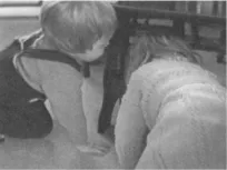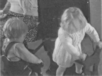 See Figures 1â6. The stills are taken from a video and the key dialogue is transcribed. Sean, 23 months, and Clare, 2 years 10 months, play together at a family gathering. They play in the living room of their Grandmaâs house and they are surrounded by visitors, some known to them, some not. The front door is opened and new visitors arrive with all the associated pleasantries of welcome. Cups of tea are passed around and in the midst of this convivial babble the two children play, and what do they play? They play house (Figure 1). Clare: Come to my house! Can I come to your house? Thank you. Please! Sit down, sit down.