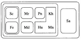 As an alternative to the tree type of diagram, the meiotic amoeba model is useful for rendering transparent certain areal/typological zones (Sc = Saamic, Fe = Fennic, Mr = Mari, Md = Mordva, Pn = Permian, Hu = Hungarian, Kh = Khanty, Mn = Mansi, Sa = Samoyedic):