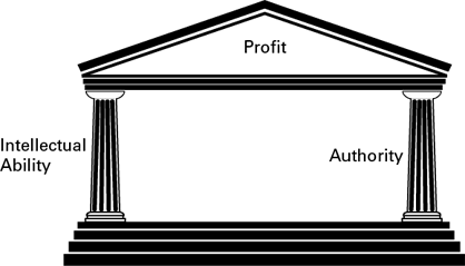 Friedmanâs quote reveals that we have lived in a business world that worshipped the concept of financial profit. This singular pursuit was fuelled by executive leaders who relied upon one central assumption: if I have a powerful enough intellect to work out the best answers and I have the authority to implement those answers then I will maximize the financial returns of this business. I will be successful in the eyes of the business owners. We worshipped profit and the temple of financial profit was supported by two sacred pillars â intellectual ability and authority (see Figure 1.1). I am not using the word âauthorityâ in the context of being an expert on a topic or even as the enforcer of agreed standards, policies and rules. I am using it in the context of a job title in a hierarchical organization, which grants an executive leader the authority to tell someone else what to do.