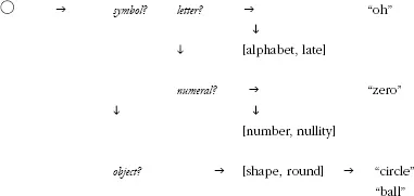 Logically, this seems to require some kind of early contextual test to decide if the input is a valid candidate for processing via the symbolic channel, and, if so, whether it is classifiable as a letter or as a numeral. Allocation to the symbol channel allows direct access to a store of symbol names. The symbols may, additionally, have a semantic representation expressing set membership, location in the conventional sequence, and aspects such as magnitude. This information might be accessed through the name or directly by an alternative pathway. If the input is not classed as a symbol it will be treated as an object and processed via the system of object semantics.