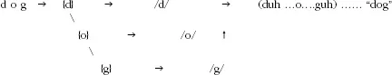where {} is a grapheme, // is a phoneme, (..) is overt or covert letter sounding, and “” is an assembled (blended) speech ou...