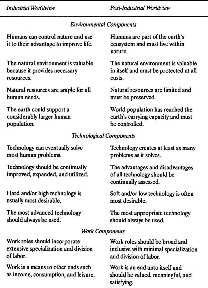 FIGURE 1.1 Components of the Existing Industrial Worldview and the Emerging Post -Industrial Worldview in Modern Societies