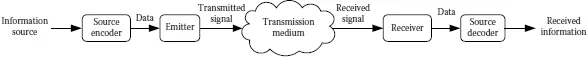The emitter of data consists of an entity responsible for the insertion of data into the communication system and for the conversion of data into signals. Note that signals are transmitted, not data. Signals consist of an adaptation* of data, such that their transmission is facilitated in accordance with the used transmission medium. Similarly, the receiver is responsible for converting the received signals into data.