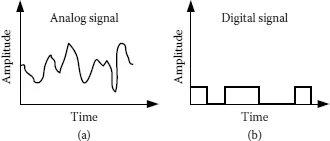 Figure 1.2 Example of (a) analog and (b) digital signals.