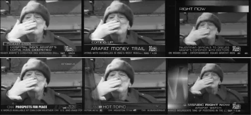 Figure 1.1 Video footage reuse in broadcasts. All shots were correctly retrieved by our system from a 88+ h database (Image from Walker, K., TRECVID 2006, LDC2006E40, Linguistic Data Consortium, Philadelphia, PA, 2006 With permission.)