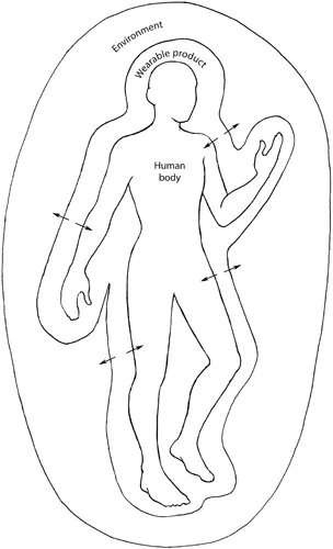 See Figure 1.1 for a simple illustration of the human body within the environment; the wearable product is the mediating variable. Understanding these factors is essential for the wearable product designer.