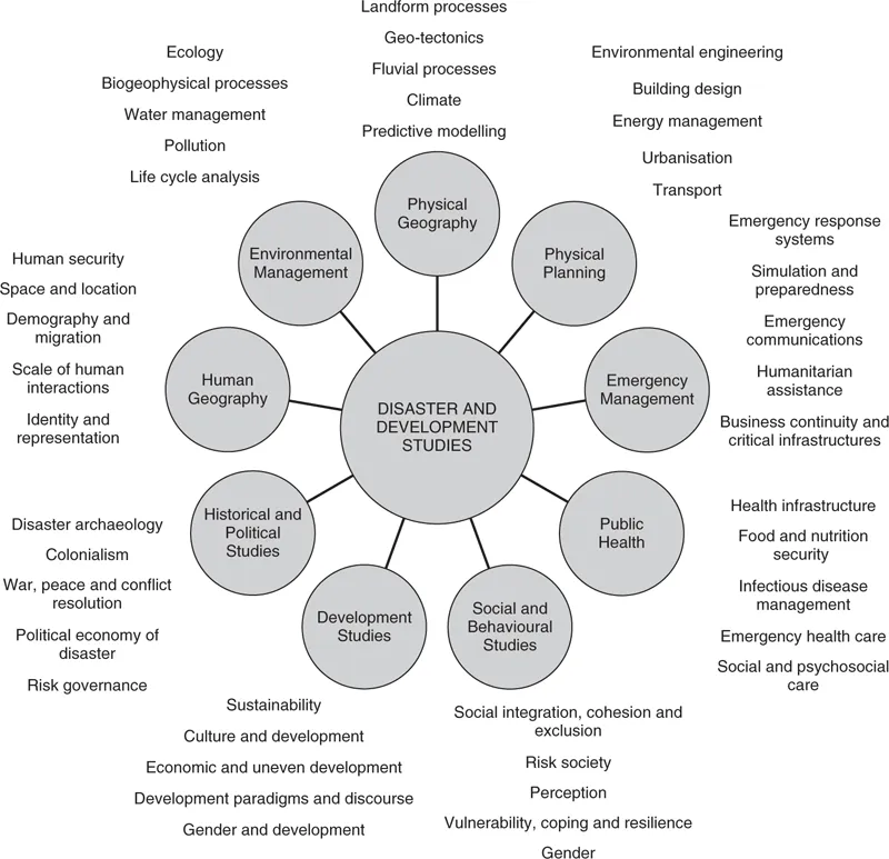 The causes, impacts and longer-term consequences of disasters are often brought to the attention of an international audience that is experiencing increased connectivity through telecommunications and travel. This occurs alongside personal experiences of crisis, concern about the pace of change we are witnessing, uncertainty about the future and a sense of disaster risk being out of control through climate change. It has led to an upsurge of interest in explanations for disasters, and the means to their reduction. With the emergence of such a wide interest group, one common observation has been that major disruptive events are best approached using varied expertise and knowledge. There have been significant contributions to disaster studies over the decades from disciplines such as geography, environmental studies, economics, sociology, public health and planning. The disaster and development perspective outlined in this book confirms these and links that can be wider still. The field of disaster reduction concerns prevention strategies, political will, community actions, rights, critical infrastructures, survival strategies, relief and recovery, behaviour, perception and health, to name just a few. In this context, we have learnt that supposed āexpert knowledgeā can at times mean a conundrum of missing information and failed expectations. After all, expert knowledge has not been āexpertā enough to prevent the disasters of our times. Increasingly, the role of local knowledge, grounded in local realities, provides a crucial component of the subject area. This is often beyond the reach of the formalised academy and of textbooks. Further interpretational nuances of disaster and development are to be found within ourselves, influenced by our hopes, aspirations and roles in securing wellbeing now and for future generations.