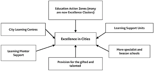 In an attempt to deal with the chronic underachievement of able pupils in inner city areas, Excellence in Cities (EiC) was launched in 1999. This was a very ambitious, well-funded programme with many different strands. In the first place it concentrated on secondary age pupils but work was extended into the primary sector in many areas. Provision for gifted and talented students was one of the strands.