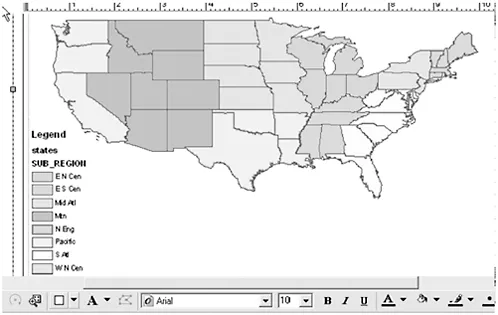 FIGURE 1.2 Census Bureau sub-regions of the United States; a layout view from ArcMap 9.1