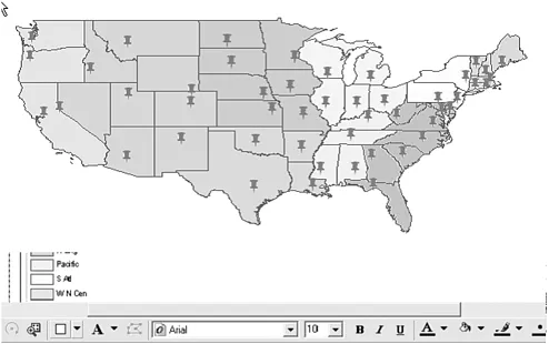 FIGURE 1.3 A pin map of the State capital cities in the continental United States