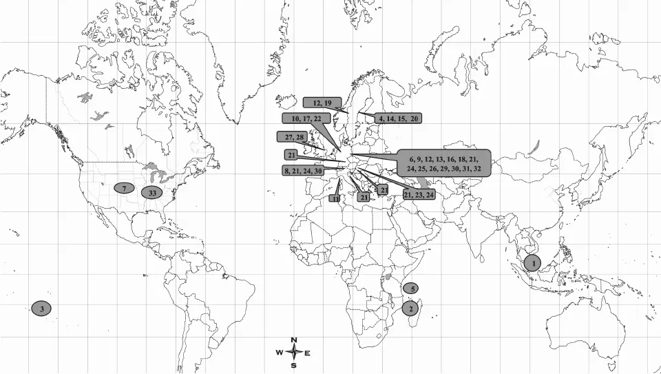 With regard to the case studies, examples were identified through journal articles presenting specific businesses, personal contacts, colleaguesâ recommendations, a request made through the Tourism Research Information Network, and Internet searches. In total, some 50 suitable case studies were identified to cover a variety of carbon management strategies. This number declined to 33, however, as some companies were not willing to reveal details of their management strategies, while others had to be dismissed as not being credible. As indicated in Figure 1.2 there is a heavy focus on Europe, where most of the case studies are located. This should not come as a surprise, however, as Europe has a comparatively long history of modern environmental awareness, environmental policy and legislation, as well as an interest by companies to act pro-environmentally that has evolved subsequently over the past three to four decades. Europe is also the first region in the world that has seriously considered climate change mitigation in its policy, and implemented an Emission Trading Scheme (ETS), which ran through its first trading period in 2005â07, and has now entered its second trading period (2008â12). Awareness of emissions and the