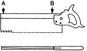 Fig.1. A BUCKLED TENON SAW MAY BE STRAIGHTENED BY GENTLE TAPS AT A AND B