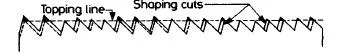 Fig.7. TOPPING AND SHAPING SAW TEETH. NOTE ALLTEETH ARE NOT YET THE SAME SIZE BUT POINTS ARE LEVEL