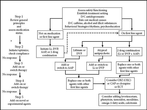 Figure 1.1 Treatment algorithm for acute mania. AAP, atypical antipsychotic; CB...