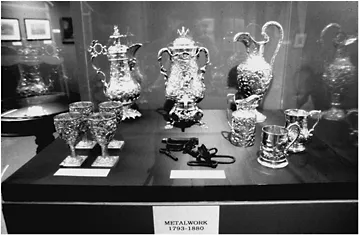 In 1992, at the Maryland Historical Society in Baltimore, the artist Fred Wilson mounted an exhibit that would become something of a legend. Wilsonâs installation, the aptly titled Mining the Museum, was a radical departure from conventional exhibition standards at historical museums. Bringing nothing new into the museum, Wilsonâs exhibit featured items from the societyâs collectionâold tea sets, paintings, furnitureâthe typical relics of a bygone era, but presented in an unprecedented way. Wilson repositioned select objects from the archives of the Maryland Historical Society to provoke difficult questions about the histories that these objects embody, and the purpose of the institutions that preserve them. Acting as curator, historian, and artist, Wilson sought to reveal untold stories embedded in these objects, by creating surprising juxtapositions, and playing with the placement of objects within the physical space of the gallery. A case labeled âMetalwork 1793â1880â contained highly polished Repousse-style silver table settings produced for the elite of Baltimore society surrounding a pair of grim iron slave shackles produced in the same period (Figure 1.1). In other parts of the exhibit Wilson positioned otherwise pristine museum âartifactsâ so that they faced the wall, rather than the viewer. These strategic interventions, presented in the context of the historical museum, set up competing and often contradictory narratives that provoked audiences to question not only how history is represented, but how it is obscured. In short, Wilson assumed the role of critical historian under the auspices of art and in the role of an artist; he transformed the possibilities for historical discourse and presented new ways to consider the role of the arts in relation to history.