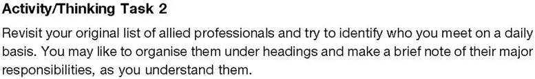The teaching assistant, the special needs assistant and the learning mentor whom I met would all come into the category of allied professionals. They and other allied professionals may: