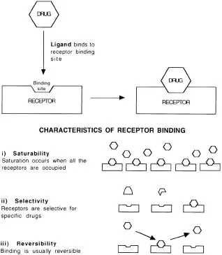 Fig. 1.2. Schematic diagram illustrating the properties of receptors.