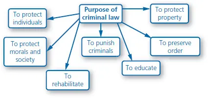 - Some of the purposes listed above have particular aims. For example, when the criminal law punishes criminals, it aims to: